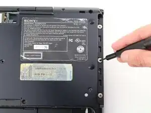 Удалите семь винтов Phillips #0 длиной 3 мм на нижней части компьютера.