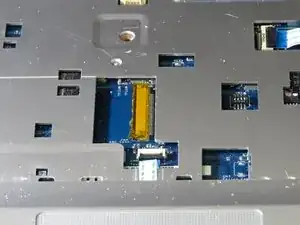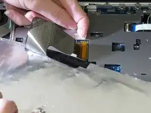 Найдите ленточный разъем за клавиатурой.