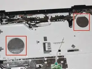 Отвёрткой Phillips #00 отвинтите три винта 5,6 мм, удерживающие крышки (один винт на крышке оперативной памяти [по центру] и два винта на крышке жёсткого диска [внизу справа]).