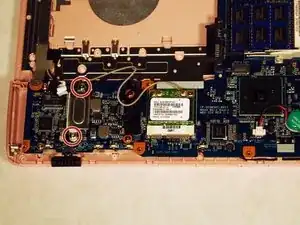 Если не отключить эти два провода, вы не сможете поднять материнскую плату, чтобы отключить клавиатуру.
