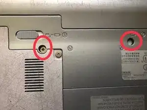 С помощью битовой отвертки и насадки Phillips #0 удалите два обозначенных винта с меткой F6. (Они крепят клавиатуру) один винт может находиться под резиновым заглушкой.