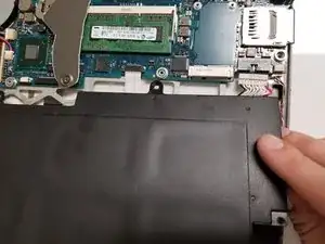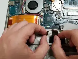 Найдите два разъёма ZIF (Zero Insert Force) под аккумулятором.