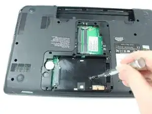Пока ваша правая рука все еще нажимает, снимите аккумулятор левой рукой.