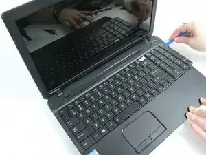 Используйте пластиковый инструмент для открытия, чтобы снять клавиатуру с ноутбука.