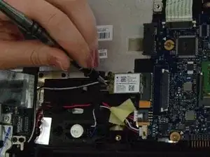 Снимите винт 5 мм с микросхемы под металлической лентой рядом с картой памяти и отключите микросхему. Используйте отвертку Phillips #0.