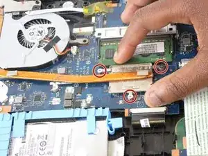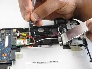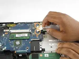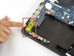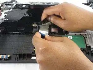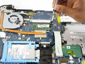 Осторожно отделите фиксирующую ленту от шлейфа, соединяющего клавиатуру с материнской платой.