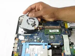 Снимите вентилятор с разъёма, отпустив зажимы с каждой стороны гнезда.
