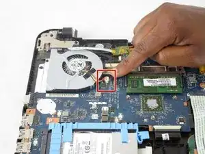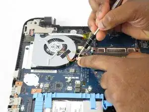 Снимите три винта 3 мм, фиксирующие кабель вентилятора, используя насадку PH1 и магнитный держатель.