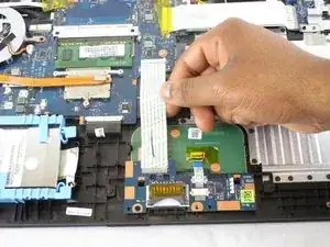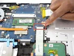 Белую ленту тачпада необходимо отключить от разъёма на материнской плате.