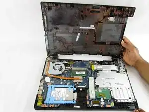 Осторожно выдвиньте аккумулятор из ноутбука.