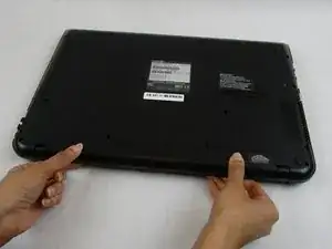 Переверните ноутбук так, чтобы наклейки с моделью были направлены к потолку.