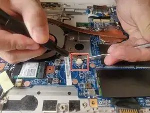 Отсоедините провода динамика от материнской платы с помощью лопатки или пластикового инструмента для вскрытия.