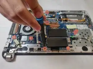 Выверните 8 винтов, крепящих материнскую плату, крестовой отверткой Phillips #1.