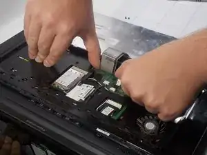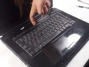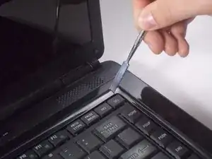 Подденьте эту пластиковую накладку с помощью лопатки и аккуратно снимите ее с ноутбука.