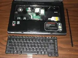 Под клавиатурой находится шлейф, соединяющий клавиатуру с ноутбуком. Не вытаскивайте клавиатуру резко.