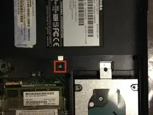 Удалите винт, который удерживает привод CD/DVD на месте.