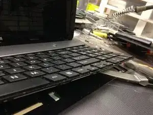Используйте тонкий нож или лопатку, чтобы освободить все крепления вдоль нижнего края клавиатуры.