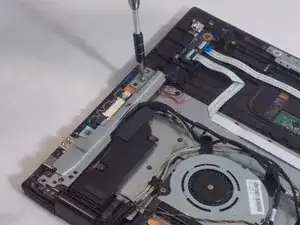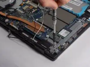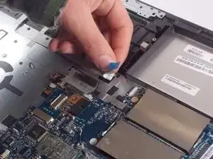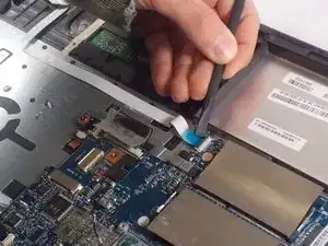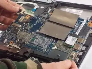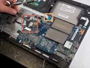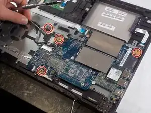 После удаления вентилятора, памяти и аккумулятора извлеките материнскую плату.