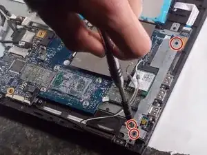 Используйте отвёртку Phillips #00, чтобы выкрутить четыре винта 8,0 мм, удерживающие материнскую плату.