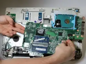 Удалите три винта Phillips #1 длиной 4 мм, удерживающие материнскую плату.