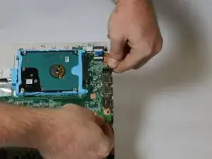 Поднимите материнскую плату в области USB-порта, одновременно оттягивая раму от материнской платы.