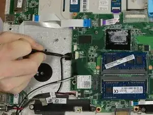 Поднимите охлаждающий вентилятор, чтобы вынуть его из ноутбука.