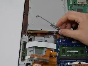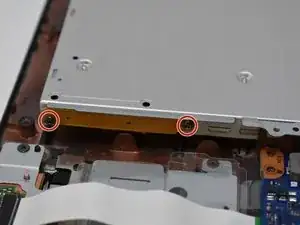 Удалите два винта 2.5 мм с боковой стороны оптического привода с помощью отвертки Philips #0.