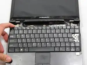 Осторожно снимите клавиатуру, приподняв верхнюю часть клавиатуры, ближайшую к экрану.