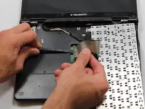 Будьте осторожны, чтобы не повредить шлейф под клавиатурой, который соединяет клавиатуру с компьютером, при её снятии.
