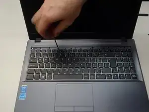 Сложите клавиатуру вперед, осторожно, так как она все еще соединена кабелем с материнской платой.