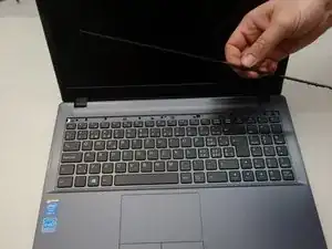 Переверните ноутбук, затем поднимите светодиодную крышку.
