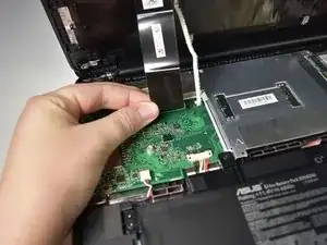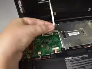Отсоедините широкий черный кабель клавиатуры от материнской платы.