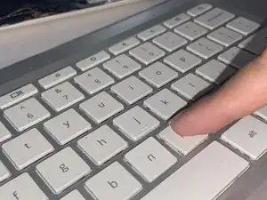Выключите Chromebook, чтобы избежать возможных проблем при замене клавиш. Если вы заменяете только отсутствующую клавишу, а не поврежденную, пропустите первый шаг, так как он относится только к сломанным клавишам.
