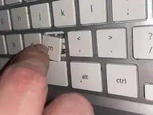 Поместите плоский предмет, например, инструмент для открытия iFixit, под сломанную клавишу и поднимите вверх, чтобы удалить её.