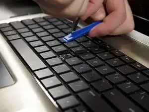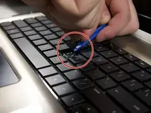 Снимите клавишу, поддев верхнюю часть клавиши с помощью пластикового инструмента для открытия.