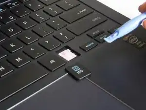 С помощью пластикового инструмента для открывания аккуратно поддвиньте тонкий кончик под клавишу.