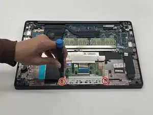 Используйте отвертку Phillips №0, чтобы ослабить два фиксированных винта 3 мм, крепящих аккумулятор.
