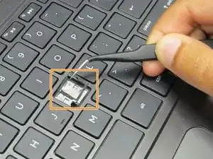 С помощью пинцета удалите два черных квадратных элемента из области под клавишей.