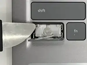 Используйте лопатку, чтобы осторожно поддеть край клавиши и приподнять ее.
