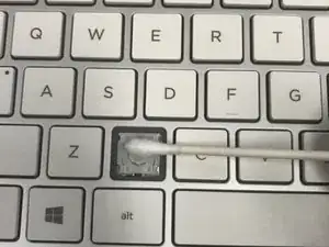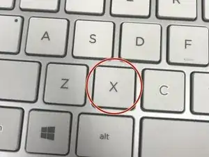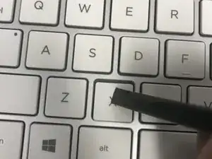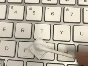 Используйте отвертку или другой плоский инструмент, чтобы подлезть под клавишу, и слегка потяните одну из сторон вверх.