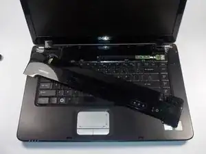 Будьте осторожны, чтобы не тянуть слишком сильно за клавиатуру, так как она все еще подключена к ноутбуку с помощью шлейфа.