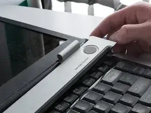 Поверните экран ноутбука так, чтобы он был горизонтален относительно основания ноутбука.
