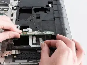 Потяните белый шлейф вверх, чтобы отключить шлейф от платы кнопки питания.