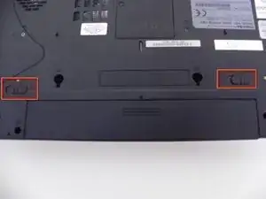 Сдвиньте два фиксатора аккумулятора, чтобы отключить батарею.