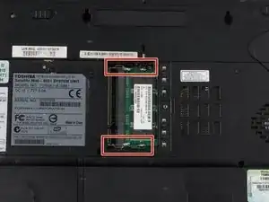 Отожмите защёлки, фиксирующие модуль оперативной памяти, наружу (от модуля) пальцами. Модуль должен приподняться.