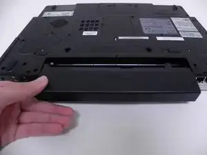 Потяните аккумулятор (вместе с корпусом) горизонтально от компьютера, чтобы снять его.
