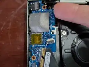 Подденьте со стороны вентилятора дочернюю плату и немного сдвиньте ее к вентилятору, чтобы освободить разъем 3.5 мм от корпуса.