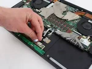 Удалите плату тачпада, удерживая один конец и аккуратно поднимая её вверх.