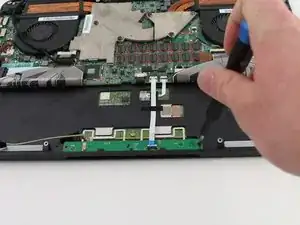 Эта процедура необходима, поскольку функциональность тачпада является основной характеристикой любого ноутбука. Следует отметить, что коренные причины проблем с тачпадом в ноутбуке Razer Blade RZ09-0130 2015 чаще всего связаны с программным обеспечением, поэтому убедитесь, что Windows и Razer Synapse обновлены перед тем, как пытаться открыть ноутбук. Основная часть этой замены заключается в отвинчивании задней панели с помощью отвертки Torx T5. После снятия задней панели используйте отвертку Phillips #0, чтобы удалить два винта, крепящих схемы тачпада.