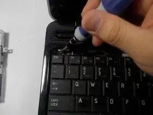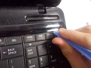 Теперь переверните устройство так, чтобы была видна клавиатура. Найдите пластиковую планку в верхней части клавиатуры.